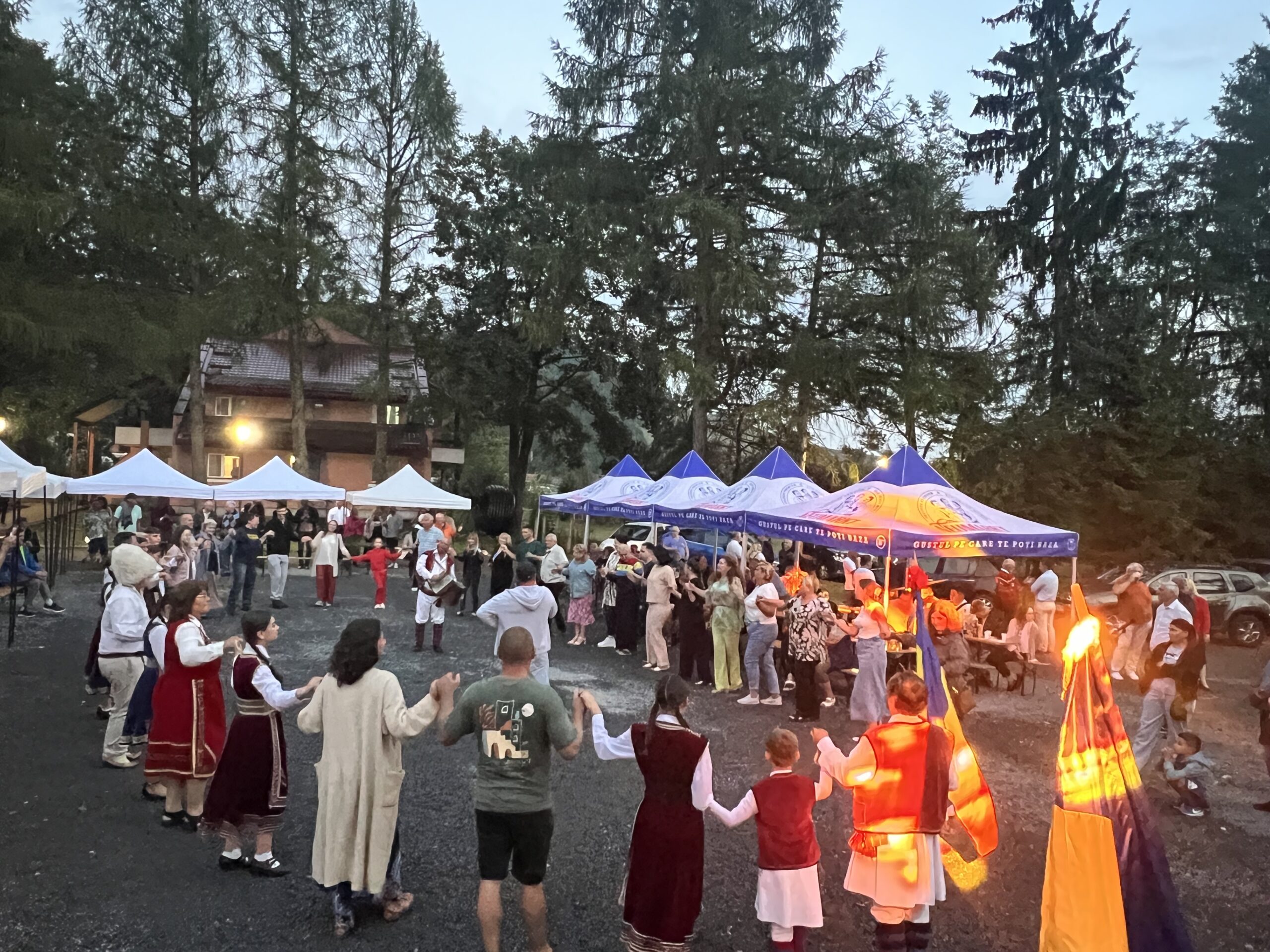 Odată cu lăsarea serii, a început programul cultural românesc, extins la această ediție pe parcursul a trei seri. Am avut plăcerea de a urmări un spectacol diversificat, care a debutat cu Ansamblul Folcloric Românesc de pe Valea Timocului și Ansamblul „DOR” al aromânilor din Dobrogea. De asemenea, ne-au încântat soliștii Olivia Volosciuc din Maramureșul Istoric, George Gabriel Catană din Mediaș și Răzvan Pop din județul Mureș. Astfel, s-a încheiat într-un mod special prima zi a ediției XXI a Universității de Vară Izvorul Mureșului.