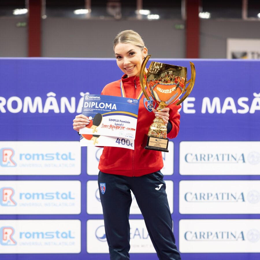 TENIS DE MASĂ. Prima jucătoare română din circuitul mondial, locul 25, Bernadette Szocs a cucerit al 8-lea titlu național consecutiv la simplu fete. Jucătoarea născută la Târgu Mureș a câștigat și titlurile naționale și la dublu mixt, respectiv dublu feminin, la Campionatul Național individual de tenis de masă pentru seniori, în Sala Polivalentă Rapid din Capitală.