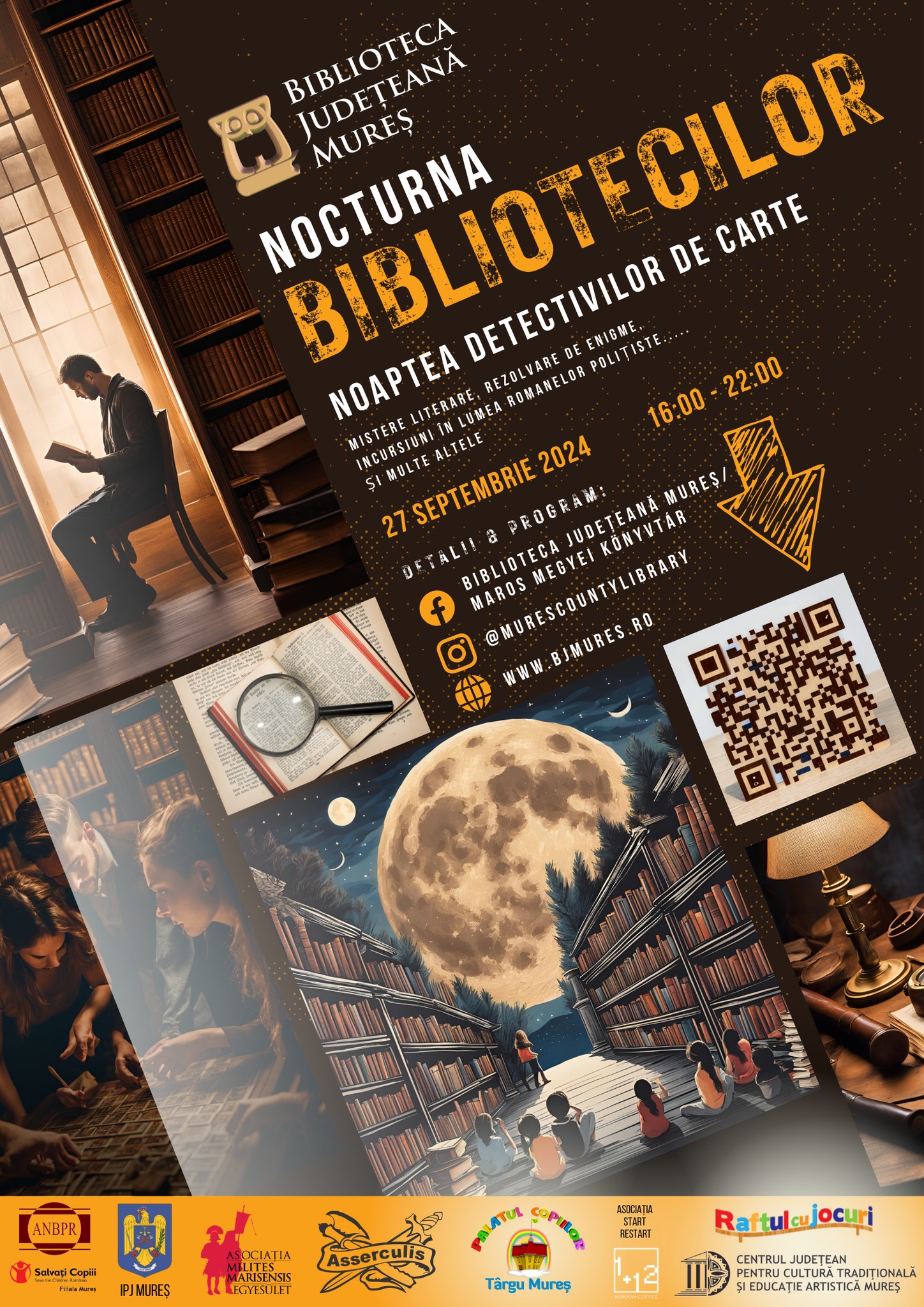 EVENIMENT. Biblioteca Județeană Mureș organizează și anul acesta un eveniment cultural național pentru promovarea lecturii și susținerea bibliotecilor ca spații comunitare. Sub tema „Noaptea Detectivilor de Carte”, evenimentul, care are loc vineri, 27 septembrie, de la ora 16:00, oferă activități variate pentru toate vârstele.