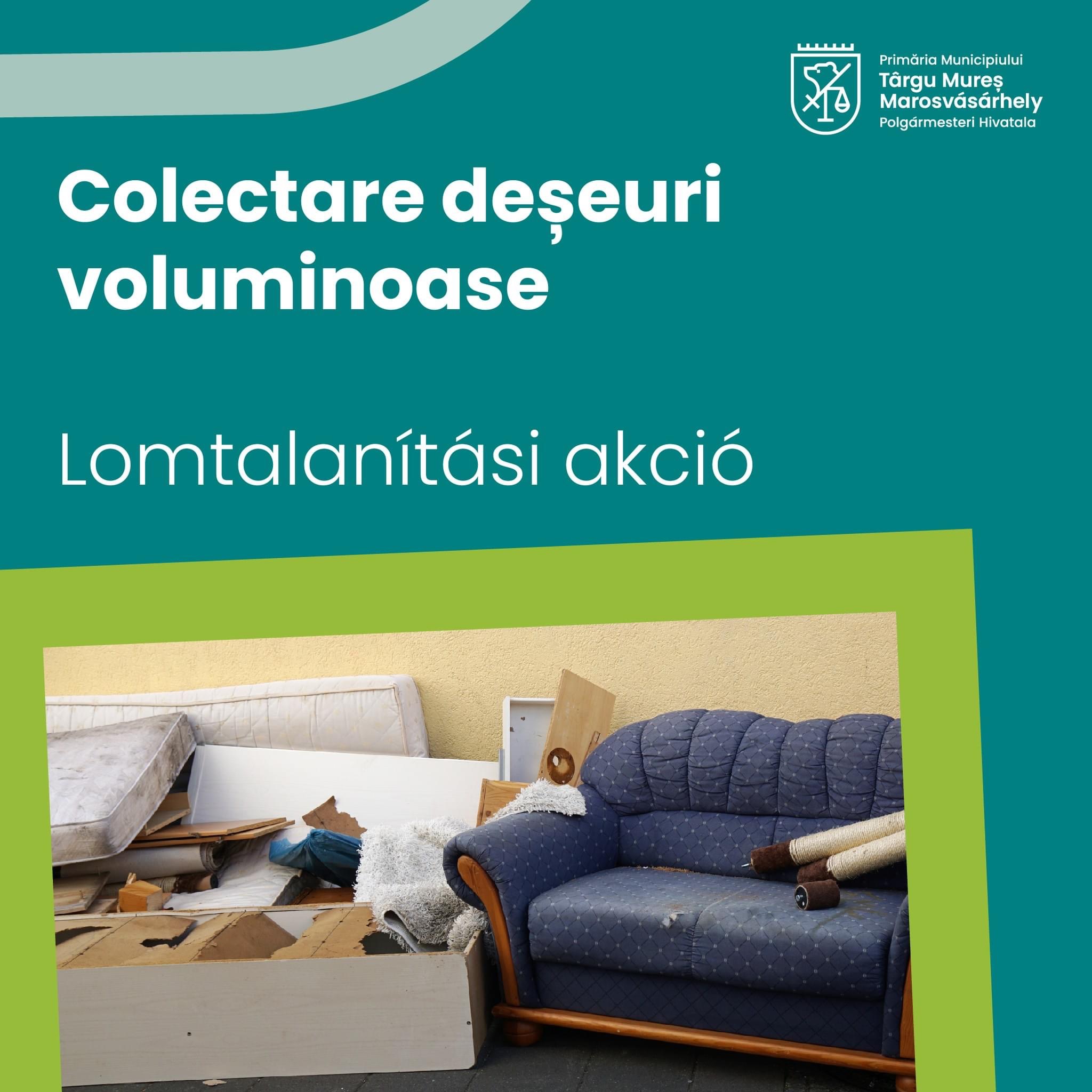 COMUNICAT. În perioada de 17 – 19 octombrie 2024 se vor colecta deșeurile voluminoase în ZONA 5 Târgu Mureș – zona centrală și Mureșeni – Budiului – Gh. Doja, unde vor fi amplasate 8 containere speciale, astfel: