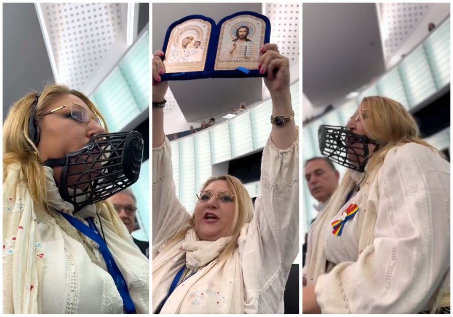 botniță Comisie Europeană Diana Şoşoacă George Jiglău Icoana Imagine Parlamentul European Radu Magdin Roberta Metsola sac negru sanctiuni SOS România Ursula von der Leyen