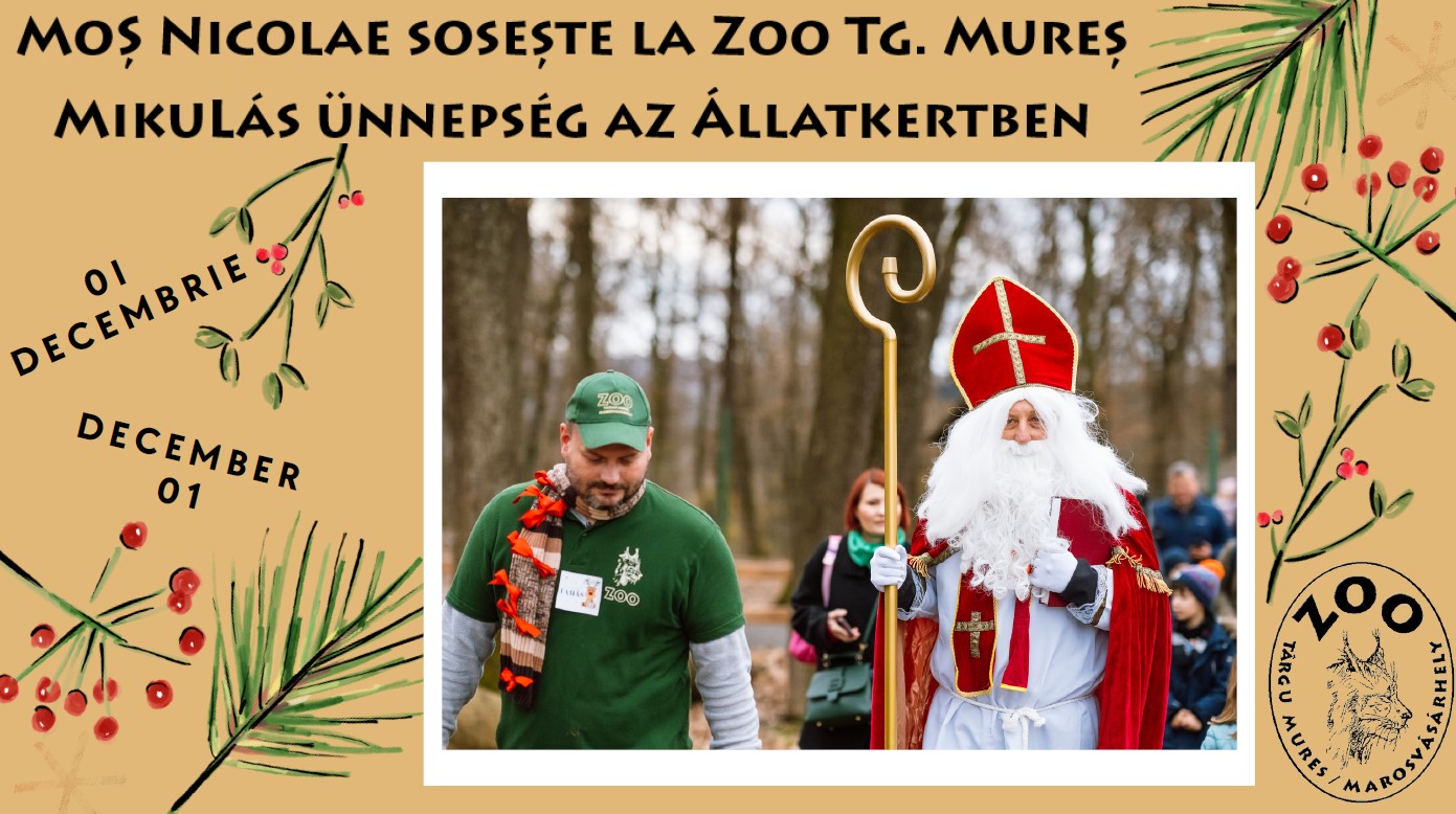 ZOO. Cu ocazia sărbătorii de Moș Nicolae, Grădina Zoologică din Târgu Mureș organizează un eveniment special dedicat celor mici și mari, invitându-i pe toți să participe la o zi plină de activități festive și surprize. Vizitatorii vor avea ocazia să-l întâlnească pe Moș Nicolae, să se bucure de spectacole de păpuși și momente muzicale și să asiste la momentele de oferire a cadourilor pentru animalele grădinii.