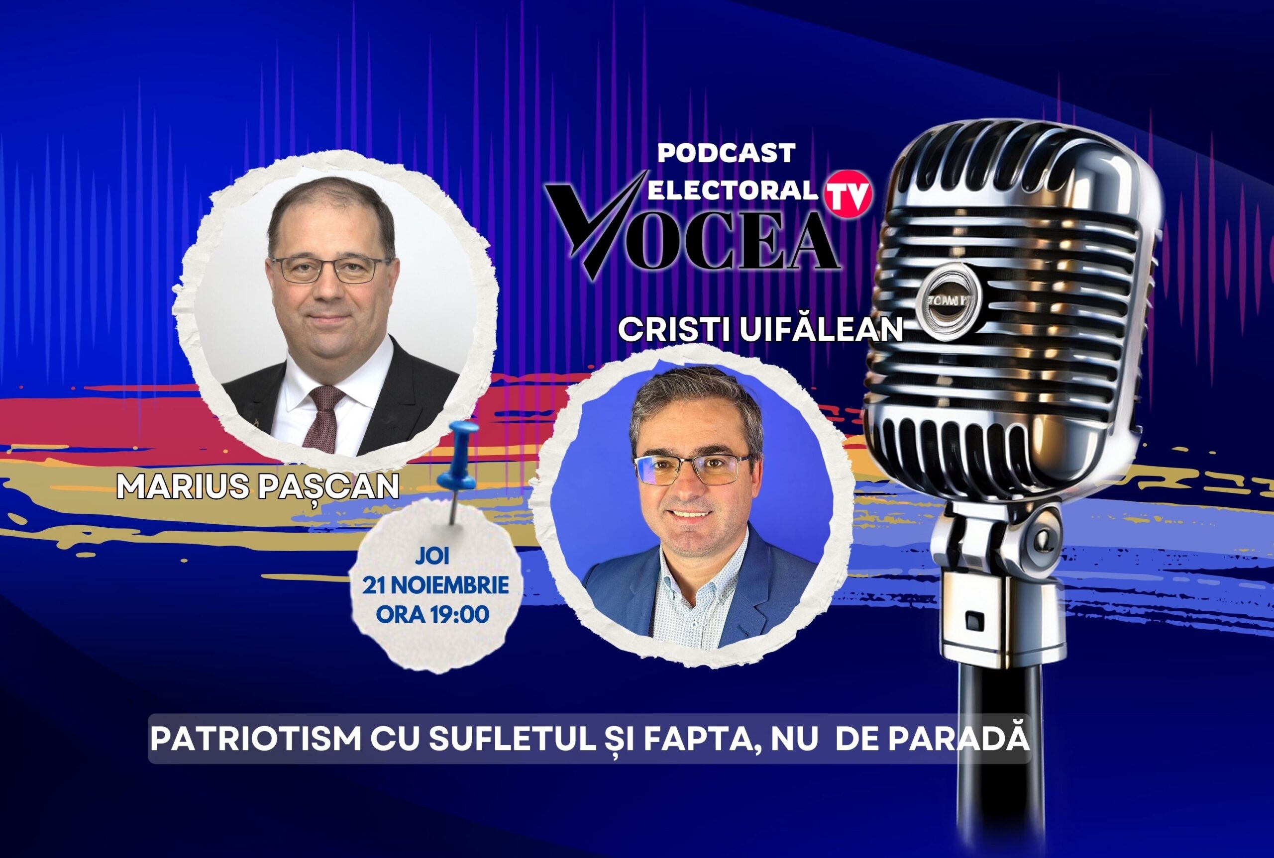 Rămâneți aproape pe pagina noastră de Facebook pentru a viziona podcastul – Joi, 14 noiembrie, live, ora 19:00 – „Patriotism cu sufletul și fapta, nu de paradă!”