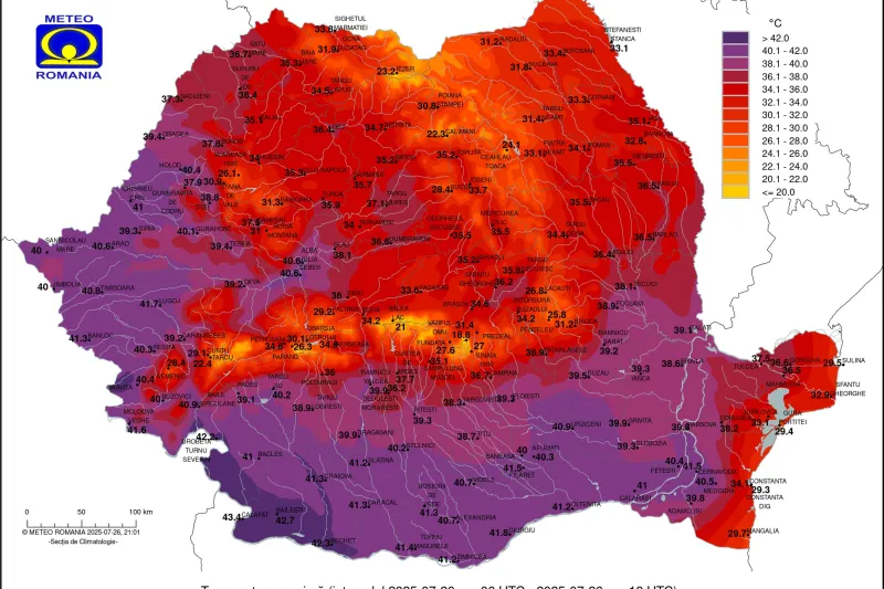 +43,4 C la Calafat pe 26 iulie 2025